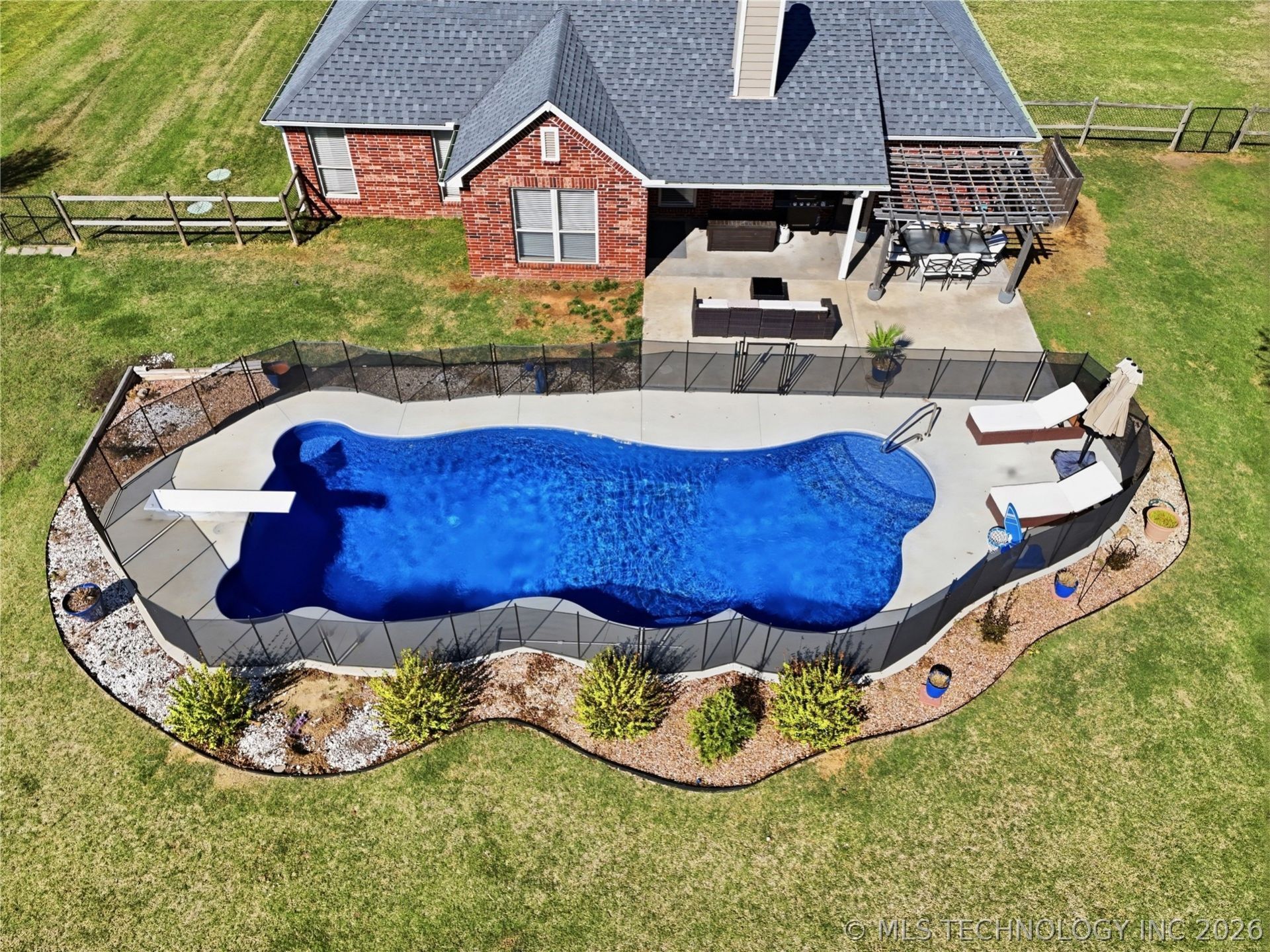 Country living with convenience! Located in the peaceful Pecan Valley neighborhood within the desirable Oologah-Talala School District, this full-brick, single-story ranch sits on a nearly one-acre corner lot just 2 miles from Hwy 169, 10 minutes north of Owasso, 15 minutes to Target and shopping, and 25 minutes to downtown Tulsa. This 4-bedroom, 2-bath home offers a spacious open living area and split floor plan, with a versatile fourth bedroom at the front that could easily serve as an office or flex space. Recent updates include freshly painted cabinets, new backsplash, refinished hardwood floors, new fixtures and interior paint throughout. Step outside to your private backyard retreat featuring a beautiful custom salt water pool, extended patio, pergola, and added full fence perfect for outdoor dining, summer barbecues, or relaxing evenings under the stars. Additional highlights include a tornado shelter, peaceful neighborhood setting, and plenty of space to enjoy the country feel while staying close to town.