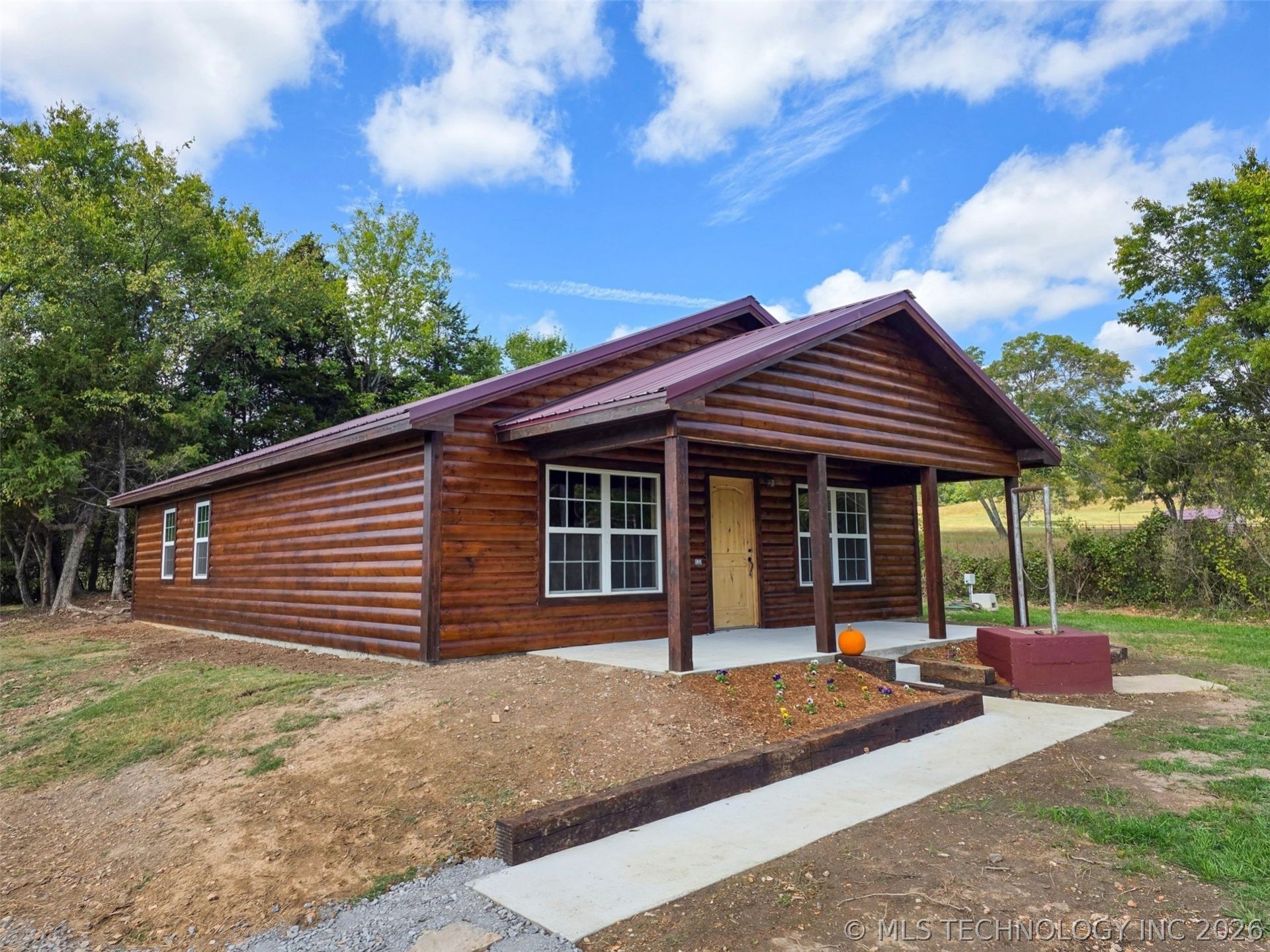 This brand new custom log sided home is the prefect blend craftsmanship and comfort. Nestled on a peaceful 1-acre country setting, this 3-bedroom, 2-bath home offers 1,200 sq ft (Per BP) of expertly designed living space, showcasing rustic elegance throughout. Every detail was thoughtfully crafted using native cedar, red oak, yellow pine, and ponderosa pine-materials you simply won't find in other homes. Step inside to find vaulted ceilings, granite countertops, and stainless steel appliances-all designed to complement the home's warm, natural aesthetic. Enjoy relaxing evenings on the large covered front porch, featuring solid oak posts milled right from the property. Outside, you'll find a hand-dug root cellar and a stone-lined well that add to the home's character and charm. Enjoy peaceful country living with space to grow - build your dream shop, plant a garden, or simply relax and appreciate the craftsmanship that makes this home unlike any other.