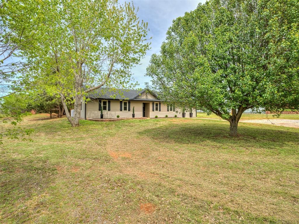 This stunning, fully remodeled 3-bedroom, 2-bath home sits on beautiful acreage in peaceful rural Blanchard, Oklahoma, within the highly sought-after Bridge Creek School District. Offering the perfect balance of modern updates and country living, this property delivers space, privacy, and convenience all in one.No detail was overlooked in this top-to-bottom renovation. The home has been thoughtfully updated to provide worry-free living with stylish finishes and quality craftsmanship throughout. Recent upgrades include a new roof with new decking, water heater, windows, exterior siding, modern LED lighting, ceiling fans, fresh interior and exterior paint, and all new flooring throughout.The fully redesigned kitchen serves as the heart of the home, featuring brand-new cabinetry, 3cm granite countertops, and stainless steel appliances, including dishwasher, range and microwave. Both bathrooms have been completely updated with new vanities, fixtures, and sleek walk in shower in the primary and a new tub and shower surround in the guest bath. Additional upgrades include: LED lighting, ceiling fans, and smoke alarms.Step outside and enjoy wide-open space, peaceful surroundings, and beautiful country views. The property offers plenty of room for outdoor living, gardening, or simply enjoying the quiet lifestyle. A 20x30 shop with concrete floors and electricity, and an 8'x40' shipping container partitioned for animals or livestock, Ideal for hobby's or storage needs.Conveniently located near Highways 37, 4, 9 and I44, offering easy access to Tinker AFB, FAA, Oklahoma City, Norman, and Mustang, giving you the best of country living without sacrificing convenience.This is the kind of property that rarely hits the market, fully updated, move-in ready, and sitting on acreage with everything already in place. This home also qualifies for USDA rural financing with zero down payment. Schedule your private showing today to experience everything it has to offer.