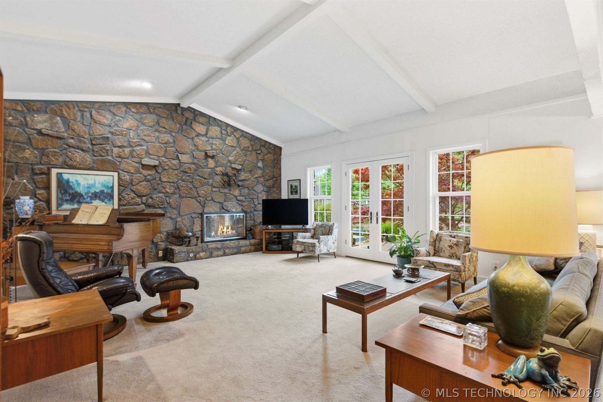COMING SOON, NO SHOWINGS OR OFFERS UNTIL 4/9/26. Welcome to this beautifully updated 4-bedroom home with a game room in the highly desirable Indian Springs Country Club golf course community in Broken Arrow. Offering approximately 2,850 square feet (CH) of living space plus an enclosed sunroom not included in the heated and cooled square foot total, this home blends midcentury modern style with a functional, flexible layout. The primary suite is located downstairs for privacy, while upstairs features additional bedrooms and a versatile game room or second living space. Inside, you'll notice fresh interior paint, a clean midcentury modern feel, and abundant natural light from large windows throughout. At the heart of the home is a sleek linear gas fireplace that creates a stunning focal point. The kitchen includes a newer refrigerator, microwave, and dishwasher, and the laundry room offers extra storage plus a second refrigerator. Storage is a standout with large closets in every bedroom and extensive attic space. The enclosed sunroom with walls of windows and skylights creates a bright indoor-outdoor living space that can be opened to the home for fresh air and natural light. Outside, enjoy a spacious deck, large backyard, and established perennials for low-maintenance beauty year after year. Additional highlights include a new roof in 2023, water leak detection sensors, and a built-in garage. Situated on approximately a .24 acre lot in Broken Arrow Schools , this home offers character, updates, and a sought-after golf course lifestyle.